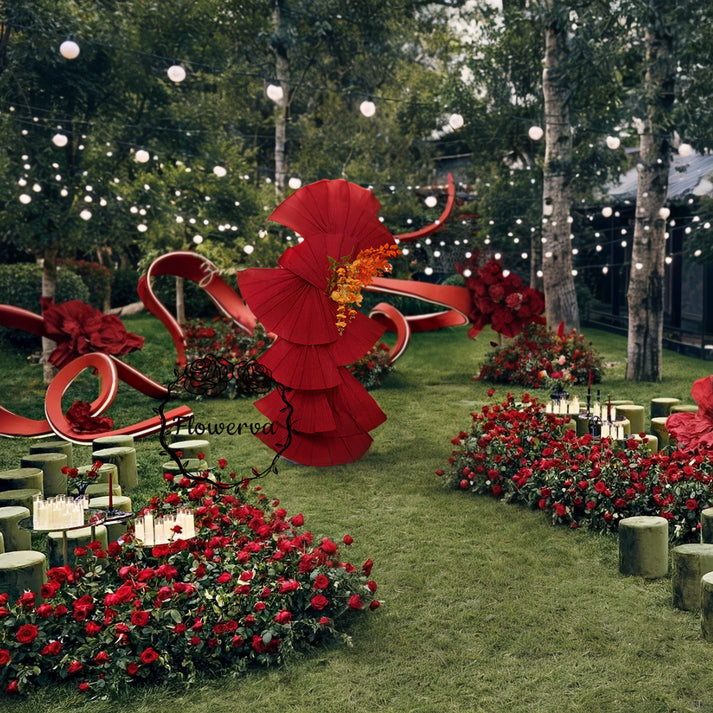 4. Exclusive Advantages for Outdoor Weddings: Flowerva's fabric flowers excel in diverse global outdoor wedding environments. From Irish lawn weddings to tropical Brazilian outdoor ceremonies, our oversized floor decorations and floral arrangements remain stable and vibrant. They ensure the romance of outdoor weddings is never compromised by natural conditions, making them particularly suitable for nature-inspired and wild-themed celebrations.