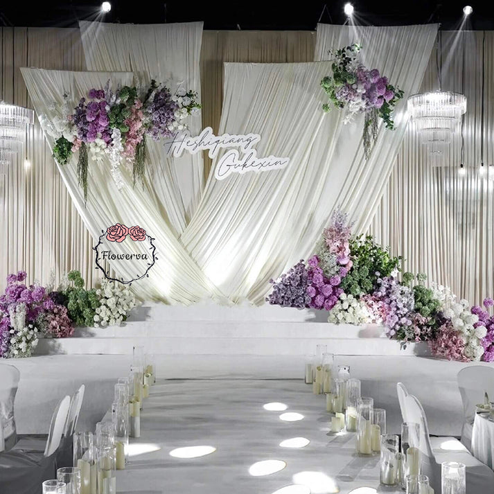 Let a Flowerva floral archway be the beating heart of your ceremony. A cascade of fabric peonies, roses in harmonious hues becomes a living tapestry, framing your union in an explosion of soft, dimensional beauty. This is where Flowerva truly shines—creating focal points that remain picture-perfect throughout your celebration.