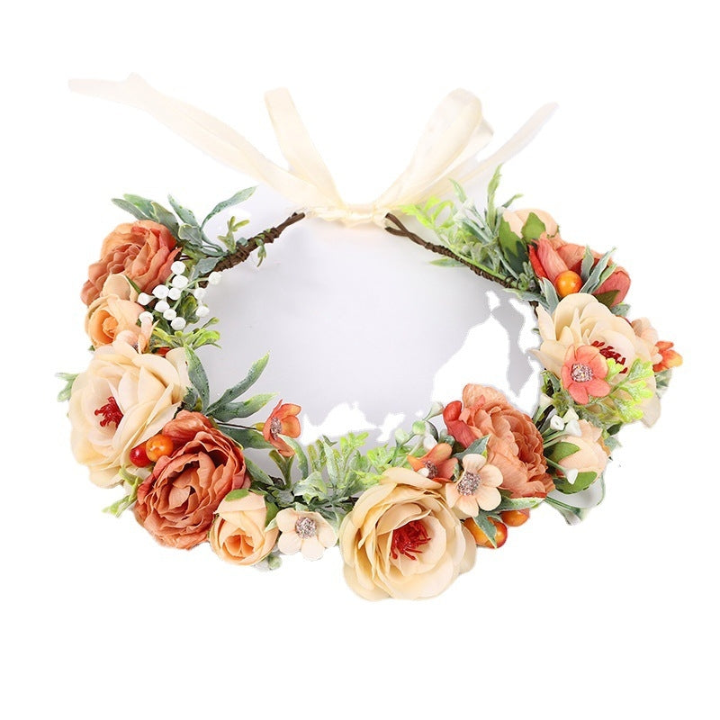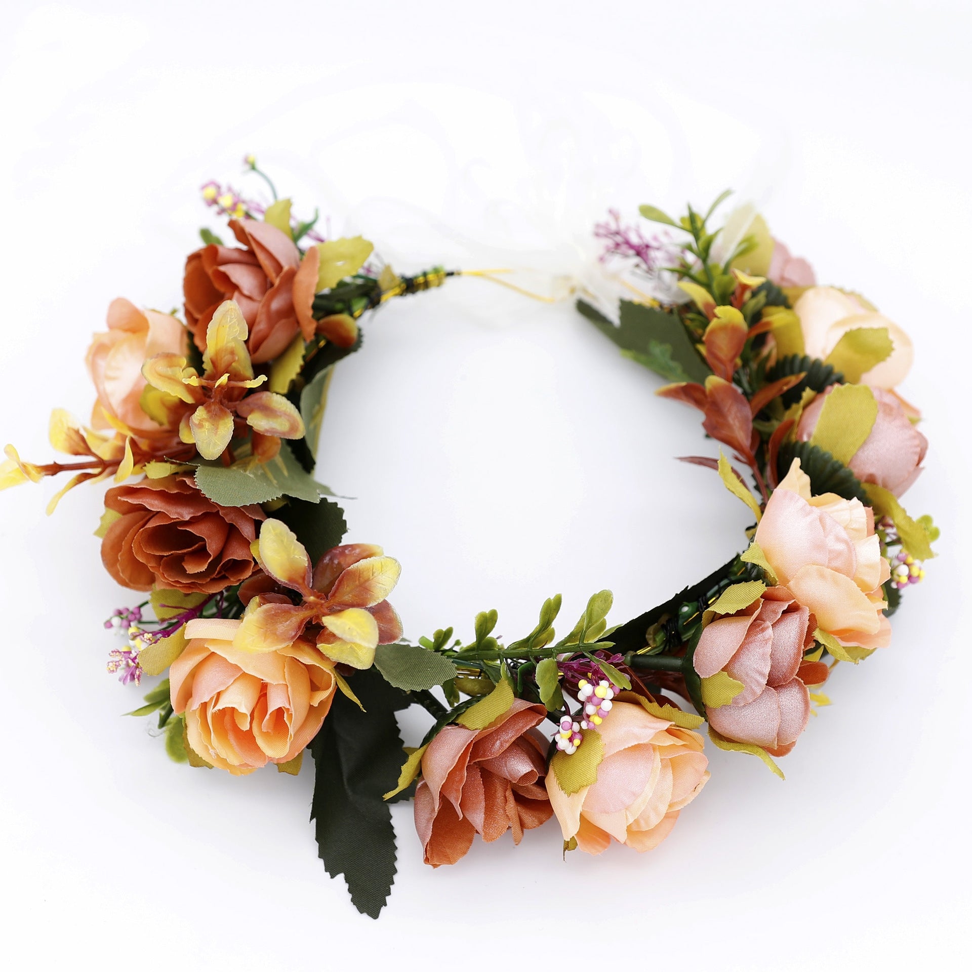 Bridal Wreath Headpiece Champagne and Orange Rose