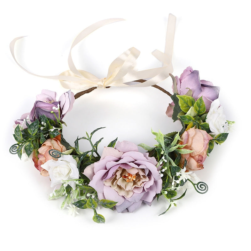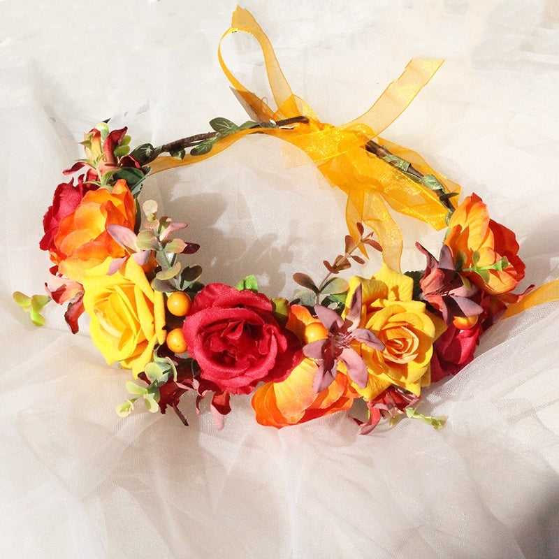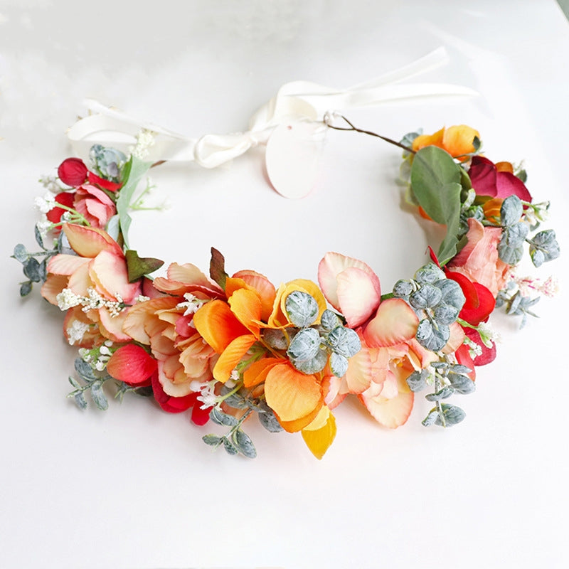 Bridal Wreath Headpiece Blue Pink Orange Flowers