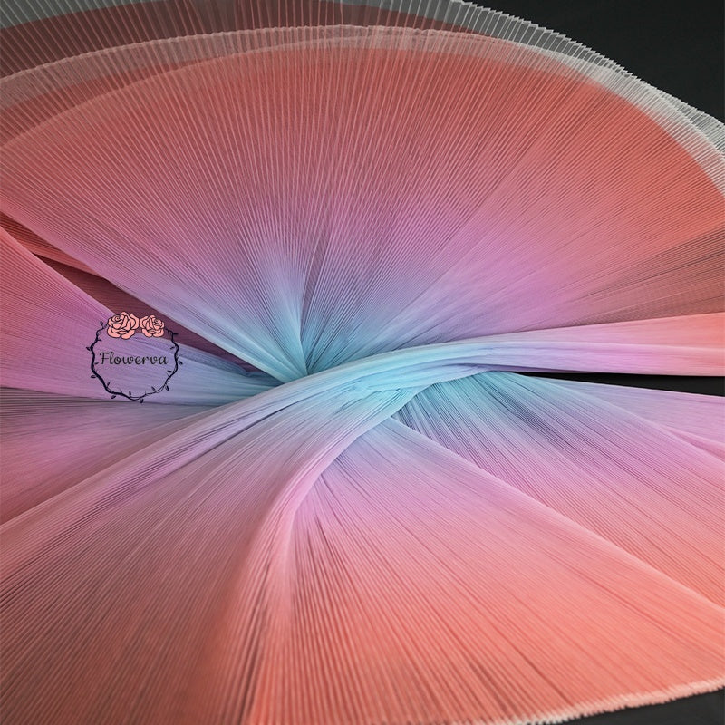 Regular price From $14.99 USDRegular priceUnit price / per$19.99 USDSale price From $14.99 USDGradient Orange Blue Pleated Organza Crinkle Fabric With Rigid And Wide Trim Stage Handmade Dress Designer Fabrics