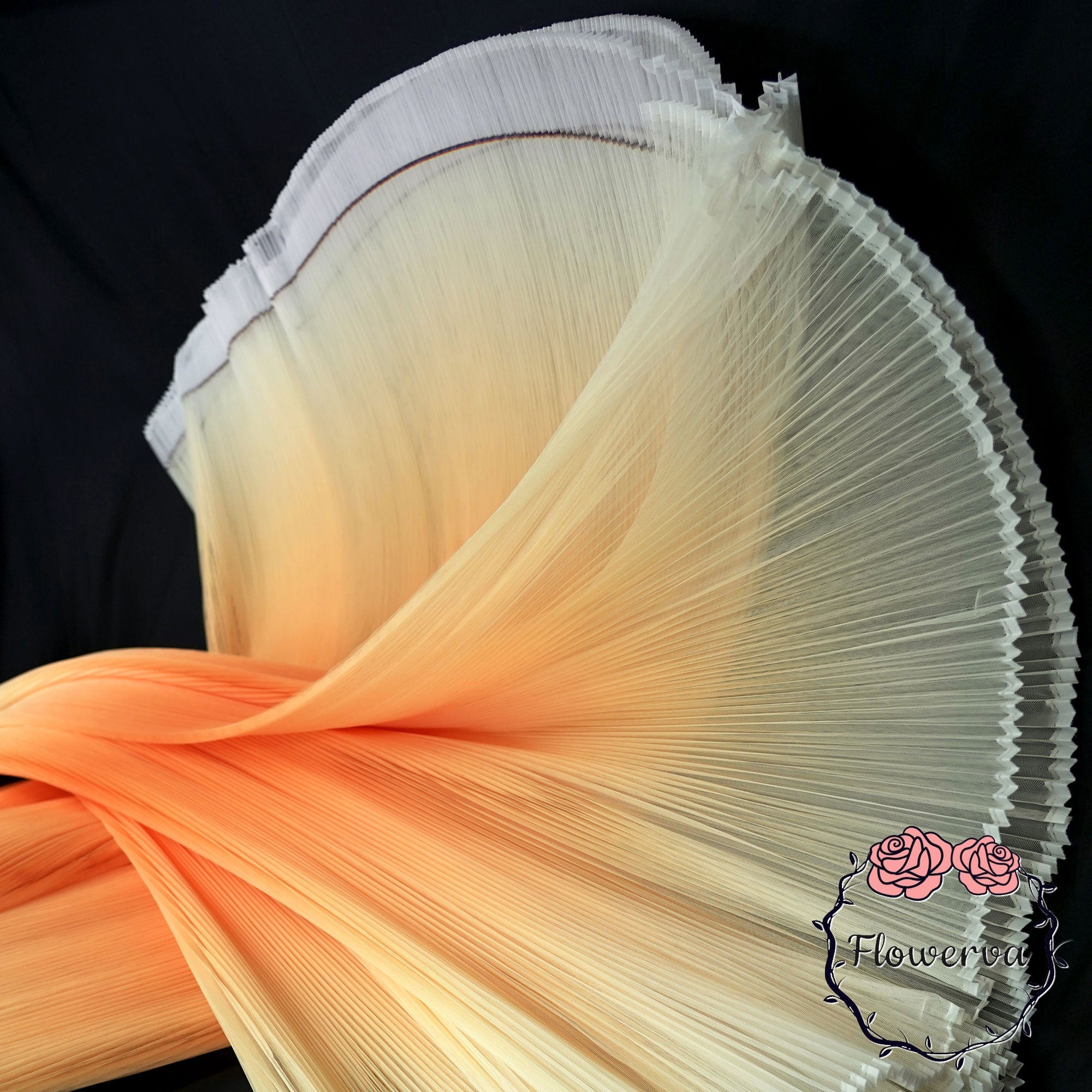 Regular price From $14.99 USDRegular priceUnit price / per$19.99 USDSale price From $14.99 USDGradient Orange Pleated Organza Crinkle Fabric With Rigid And Wide Trim Stage Handmade Dress Designer Fabrics