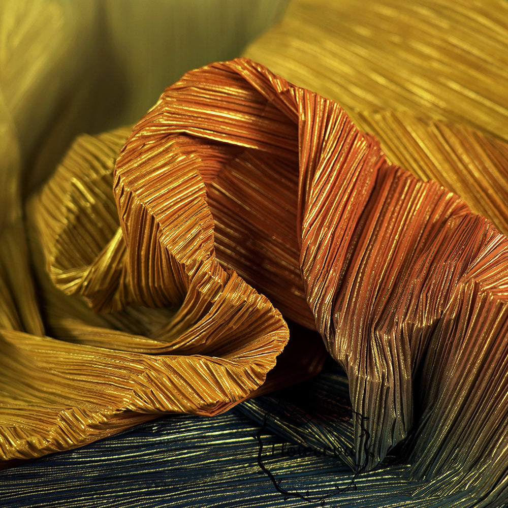 Orange Yellow Hot Gold Stamping Wrinkle Pleating Texture Fabric Wedding Decoration