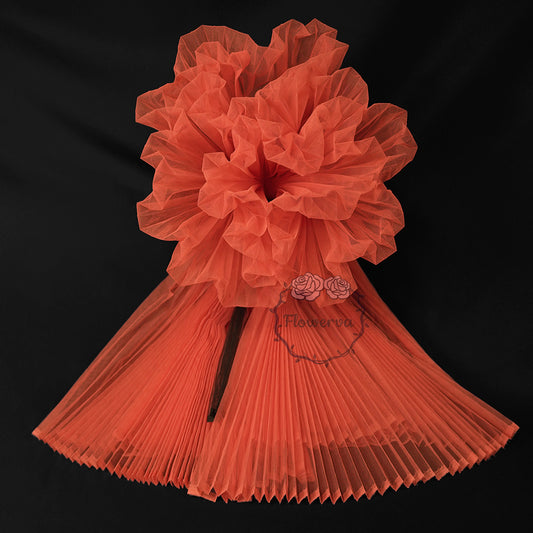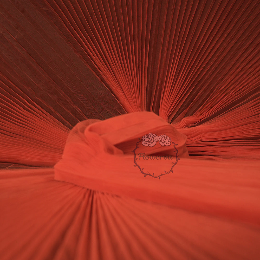 Flowerva Orange Red Great Pleated Organza Crinkle Fabric 6324