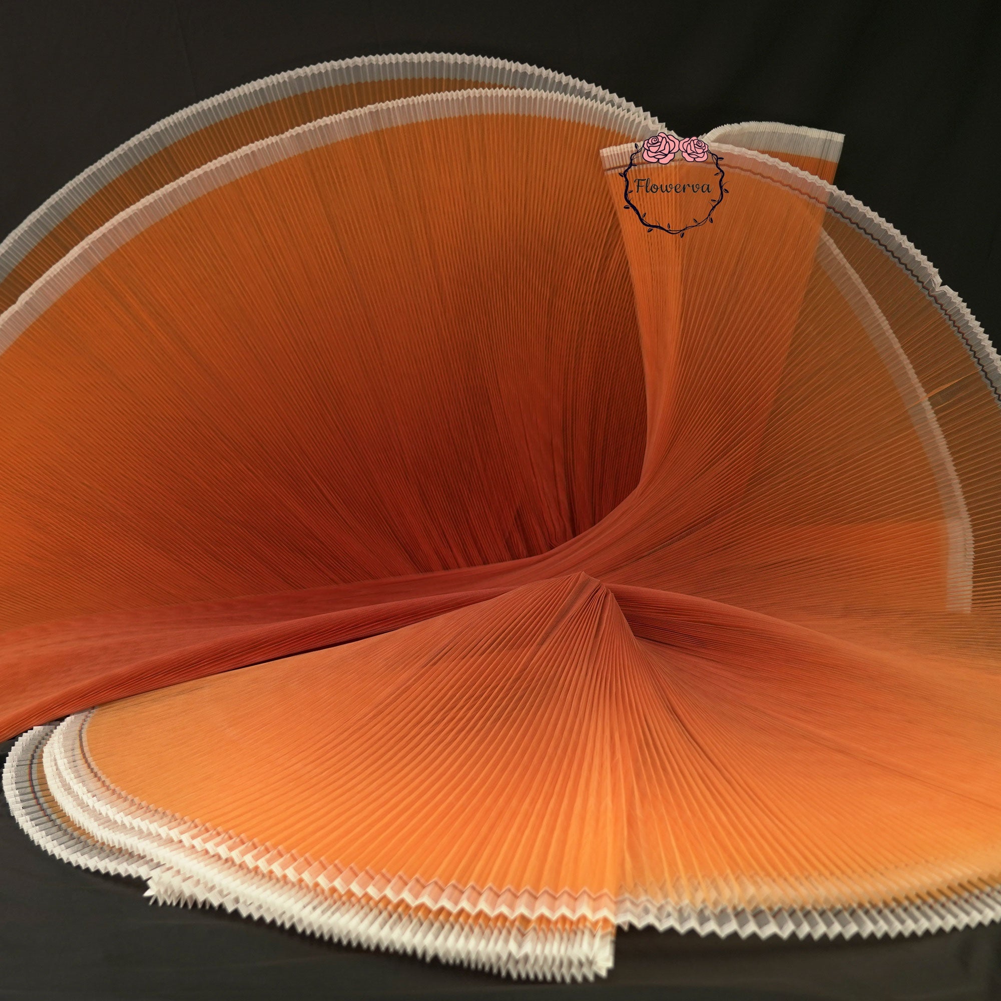 Gradient Orange Pleated Organza Crinkle Fabric With Rigid And Wide Trim Stage Handmade Dress Designer Fabrics