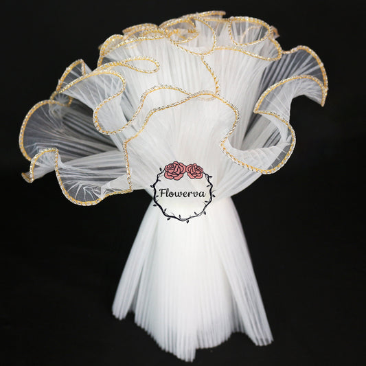 Flowerva White Lace White fabric Wavy Yarn Bouquet Packaging Organza