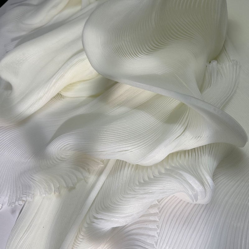 Flowerva Phantom White Mermaid Texture Pleated Organza Wedding Decoration Dress Design Fabric