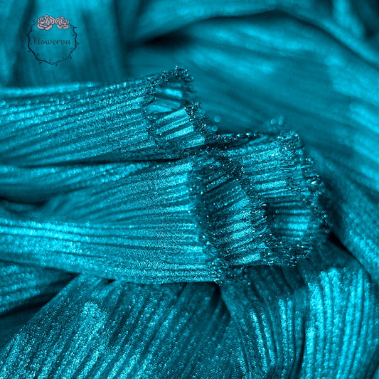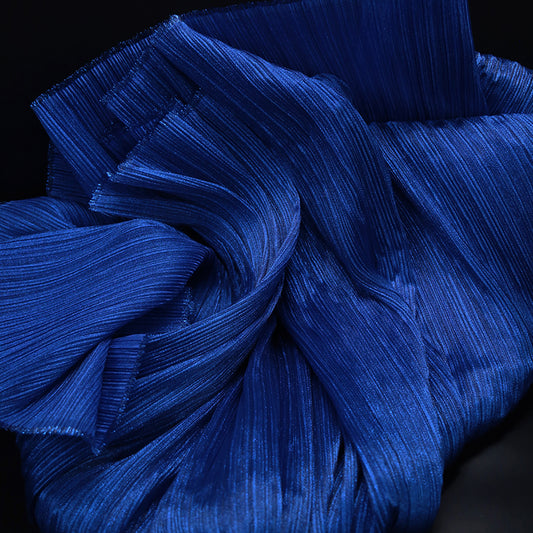 Flowerva Deep Sea Blue Pearl Yarn Texture Pleated Fabric Wedding Decoration Stage Design Floral Fabric