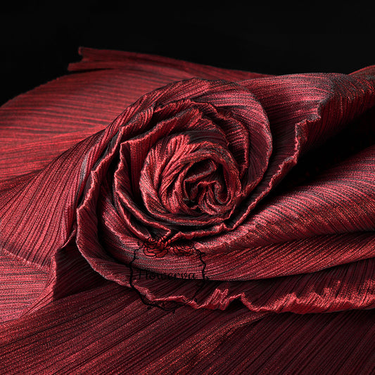 Flowerva Obsidian Red Metal Pearl Yarn Texture Wrinkle Fabric Wedding Style Stage Decoration Floral Fabric