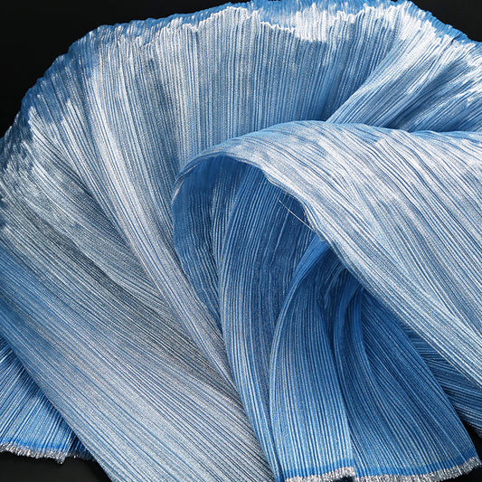Flowerva Glacier Blue Pearl Yarn Texture Wrinkle Fabric Wedding Style Stage Decoration Floral Fabric