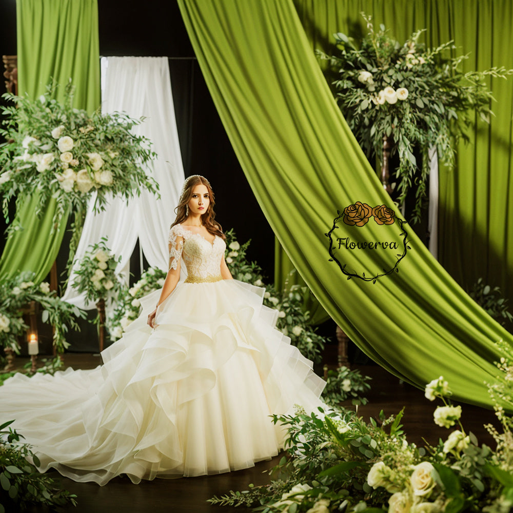 Normaler Preis Von $14.99 USDNormaler PreisGrundpreis / pro$16.99 USDVerkaufspreis Von $14.99 USDFlowerva Olive Green Elastic Milk Silk Drapery Wedding Background Wall Decoration #65