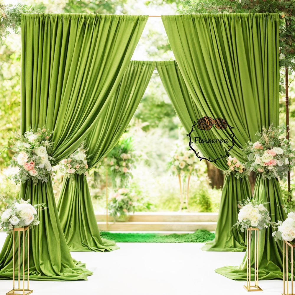 Flowerva Olive Green Elastic Milk Silk Drapery Wedding Background Wall Decoration #65