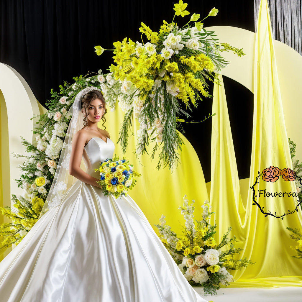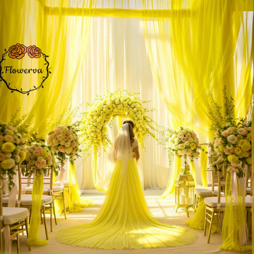 Normaler Preis Von $16.99 USDNormaler PreisGrundpreis / pro$17.99 USDVerkaufspreis Von $16.99 USDFlowerva Lemon Yellow Silk Sparkling Yarn Wedding&Party Stage Decoration Designer Fabric