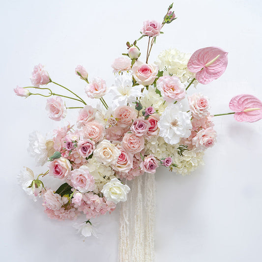 Simulated Hydrangea Roses Full Of Stars Flower Row Wedding Table Placed Flower Wedding Background Arch Decoration