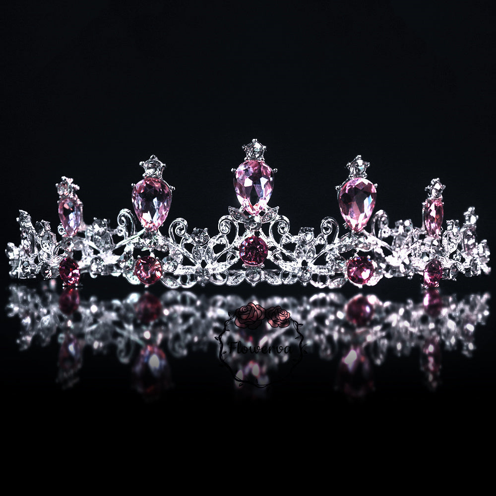 Flowerva Temperament Luxury Crystal Pink Diamond Bridal Crown Headband