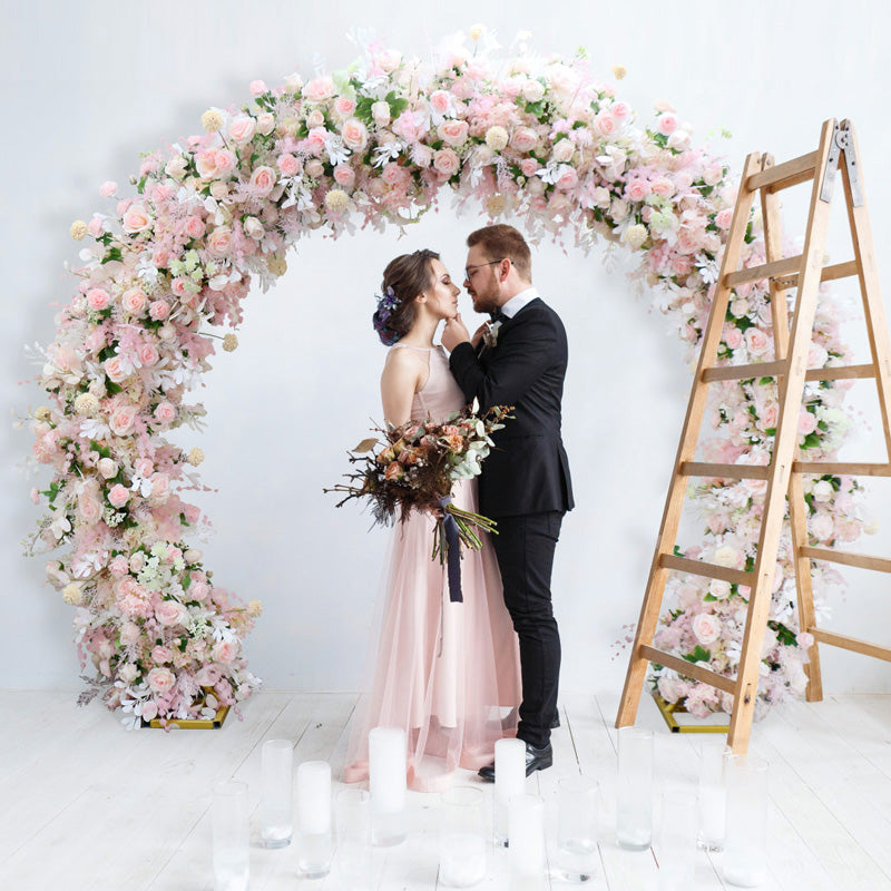 Décor de scène de mariage floral en arc rose Flowerva
