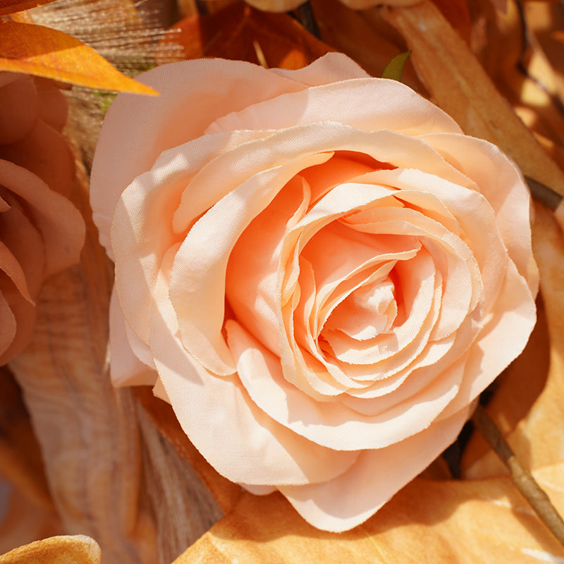 Infusez votre lieu de mariage de chaleur et d'éclat en optant pour une toile de fond florale aux teintes riches et chaudes. Le mélange de tons ensoleillés dans l'arrangement floral évoque des sentiments de joie, de passion et de célébration, ajoutant une touche de luxe à votre journée spéciale. . Laissez la toile de fond florale de mariage aux tons chauds envelopper votre cérémonie ou votre réception dans une étreinte vibrante et accueillante.
