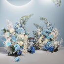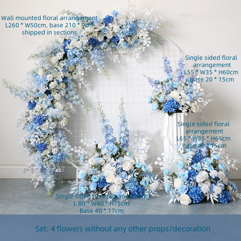 Simulation d'événement de mariage bleu, arc Floral, plate-forme de fleurs, pilier, accessoires de pile de fleurs