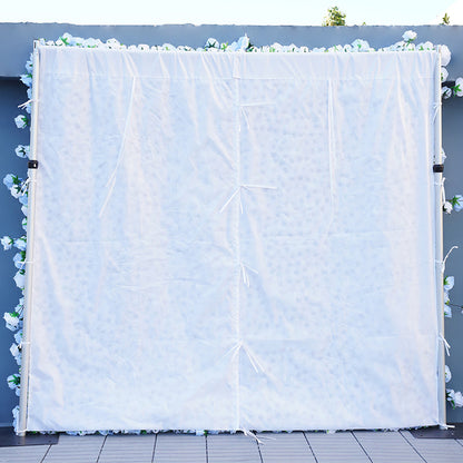 Le mélange de fleurs blanches éclatantes et de fleurs bleues sereines crée une atmosphère harmonieuse et rafraîchissante, parfaite pour un décor sophistiqué et romantique. Transformez votre lieu de mariage avec un superbe fond floral blanc et bleu qui incarne l'élégance et la tranquillité. La juxtaposition des teintes blanches et bleues sur une verdure luxuriante évoque un sentiment de sérénité et de sophistication, ce qui en fait une toile de fond idéale pour échanger des vœux ou capturer des moments mémorables.