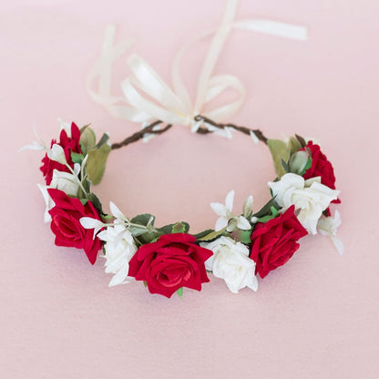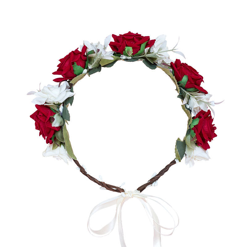 Cette magnifique couronne de mariée est confectionnée avec des roses rouges et blanches, complétant tout ensemble de mariage ou d'occasion spéciale. Dotée d'une base en métal délicate, la conception en cercle complet de la couronne assure un ajustement confortable. Faites une déclaration durable avec une touche classique.