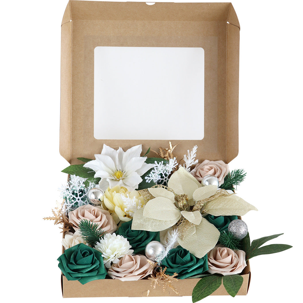 Fleurs en soie simulées : champagne x4, roses vertes x6, fleurs blanches x4, autres fleurs x2