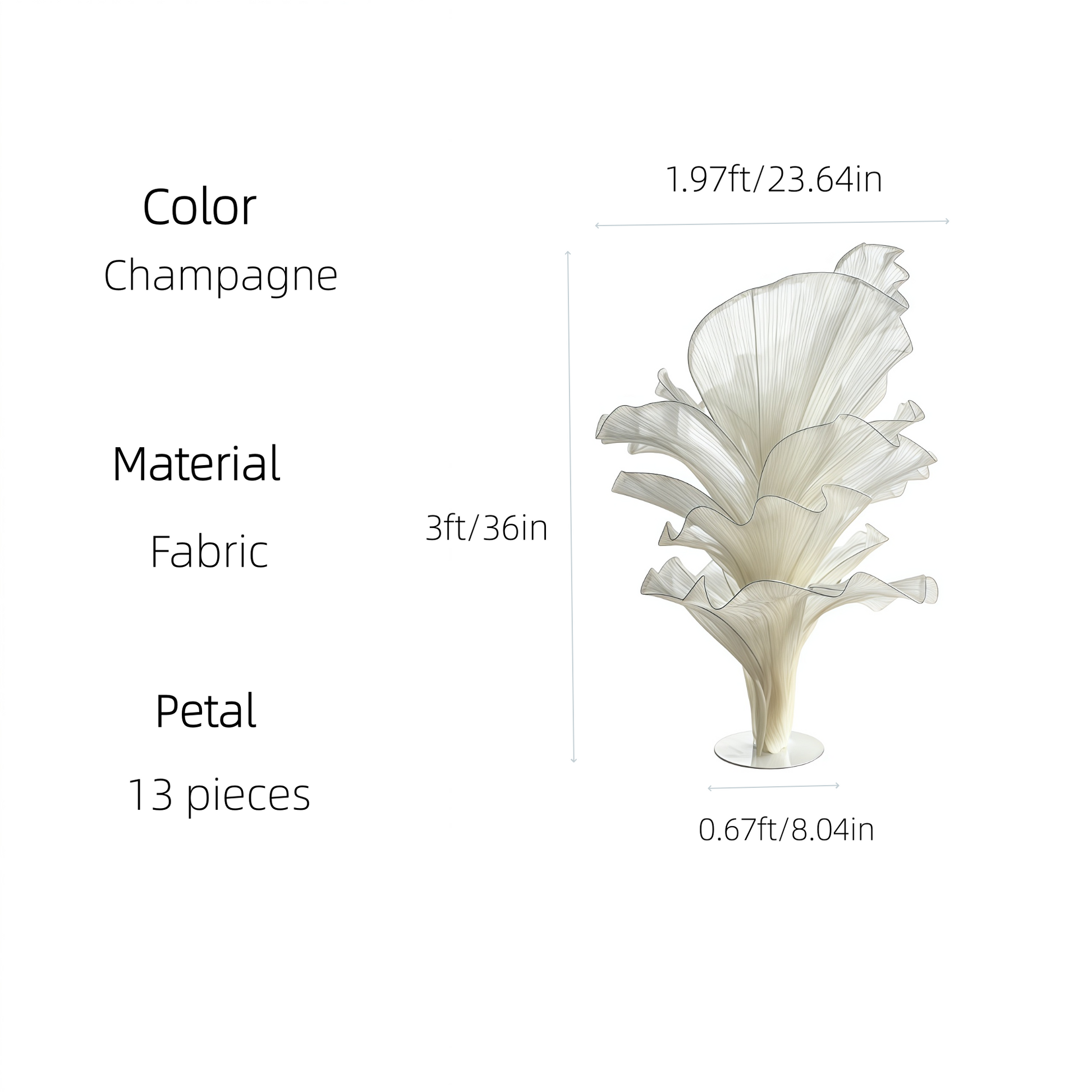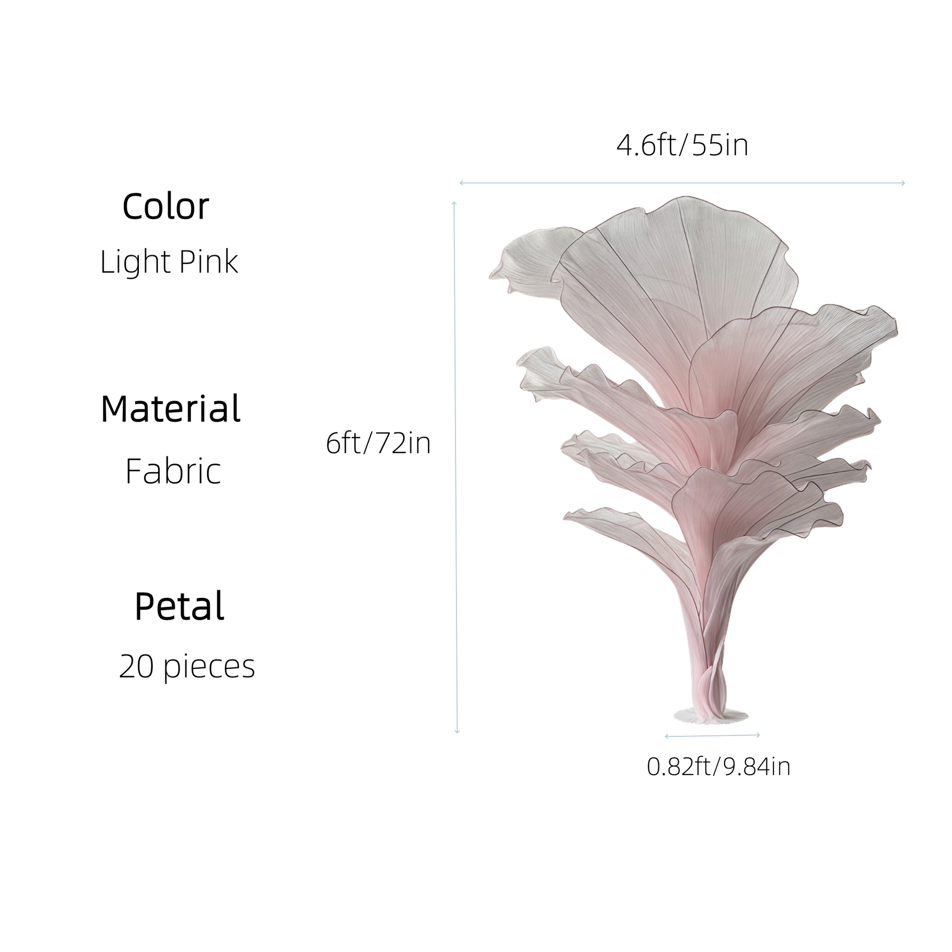 Veuillez noter que ces pétales peuvent présenter de légers écarts de taille, avec une marge d'erreur d'environ 5 cm. Lorsque vous recevez ce produit sans support, il vous donne la liberté de construire l'arrangement ou la toile de fond de votre choix. Cependant, nous vous conseillons d'être prudent lors de l'installation, car chaque pétale comporte un fil exposé discret à une extrémité pour le fixer solidement.
