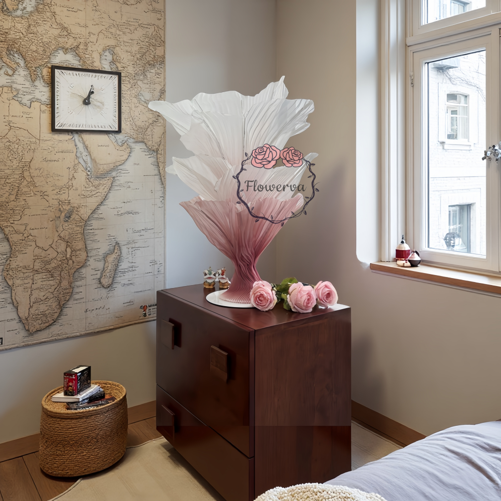 [100% handmade]: *Flowerva exclusive handmade*, our designers and craftsmen inject innovative creativity into every shape with exquisite skills and unlimited creativity. The unique color matching and three-dimensional modeling process present you with the unrepeatable beauty of art, so that every heart shines with unique light.