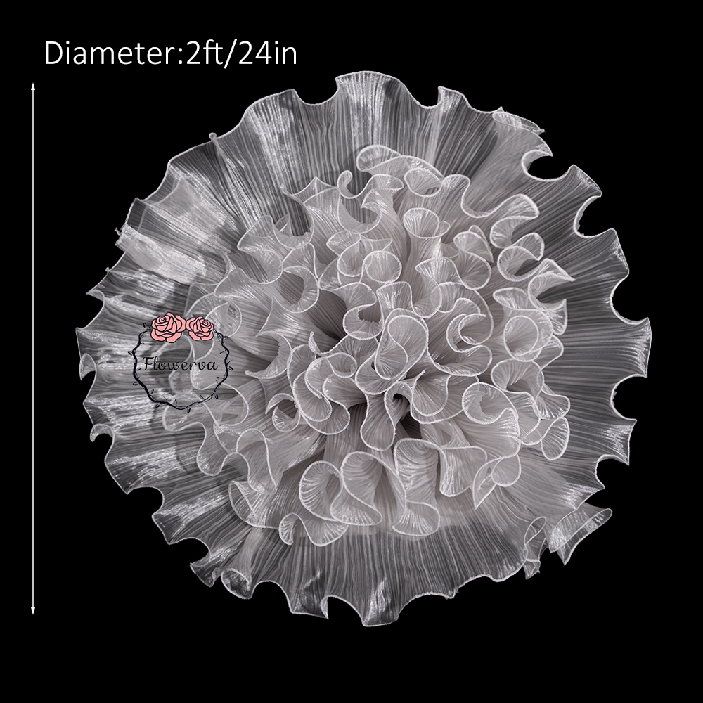 Pour cette grande fleur, nous l'avons réalisée en utilisant deux types de tissus, l'art floral sur les côtés est juste pour la décoration, mais il la rend plus belle et plus pleine. Transformez votre espace événementiel avec la beauté à couper le souffle de la toile de fond blanche géante « Grand vase » Blooms Forever de Flowerva. Ces superbes fleurs ajouteront une touche élégante à n'importe quel mariage ou fête, et leurs matériaux de haute qualité garantissent qu'elles dureront des années. Créez une toile de fond unique qui laissera une impression durable à vos invités.