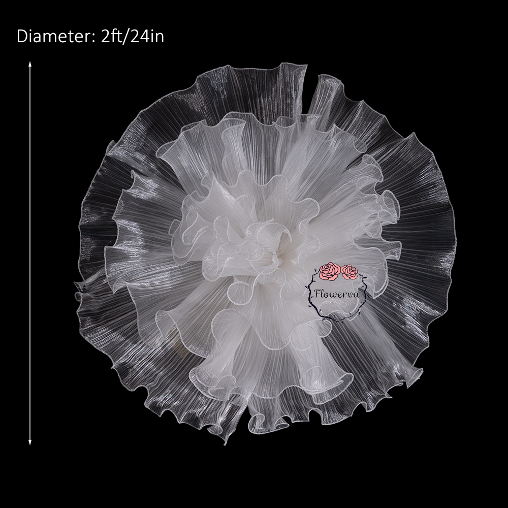 Pour cette grande fleur, nous l'avons réalisée en utilisant deux types de tissus, l'art floral sur les côtés est juste pour la décoration, mais il la rend plus belle et plus pleine. Transformez votre espace événementiel avec la beauté à couper le souffle de la toile de fond blanche géante « Grand vase » Blooms Forever de Flowerva. Ces superbes fleurs ajouteront une touche élégante à n'importe quel mariage ou fête, et leurs matériaux de haute qualité garantissent qu'elles dureront des années. Créez une toile de fond unique qui laissera une impression durable à vos invités.