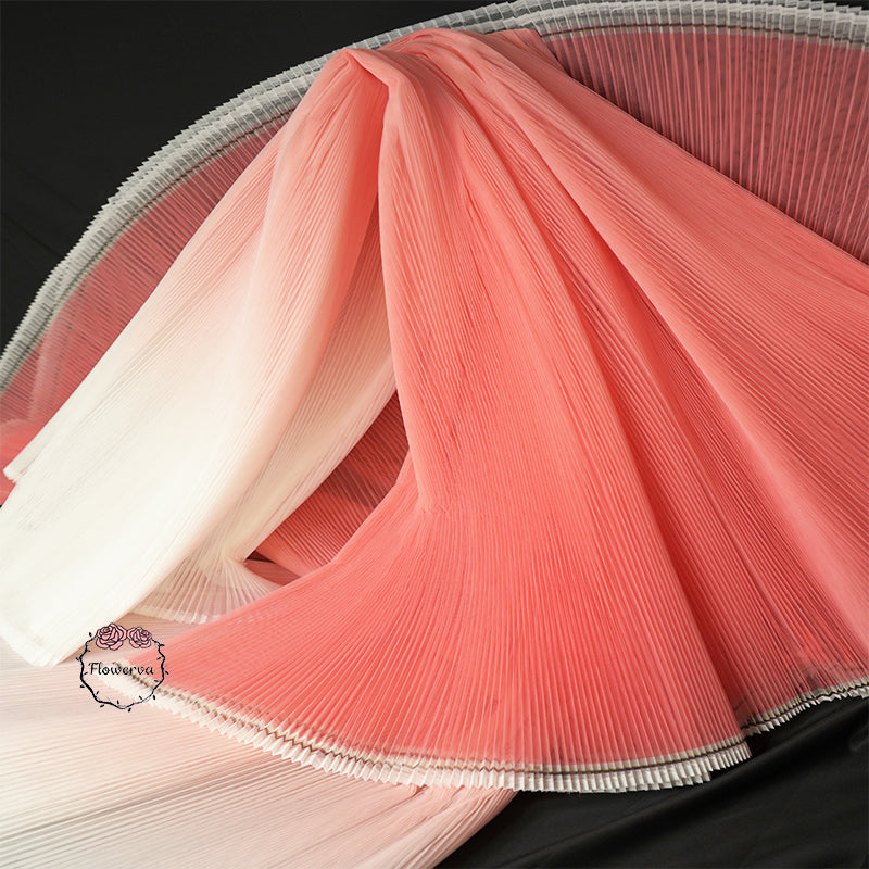Tissu froissé en Organza plissé rose dégradé, avec garniture rigide et large, tissus de styliste pour robe de scène faits à la main