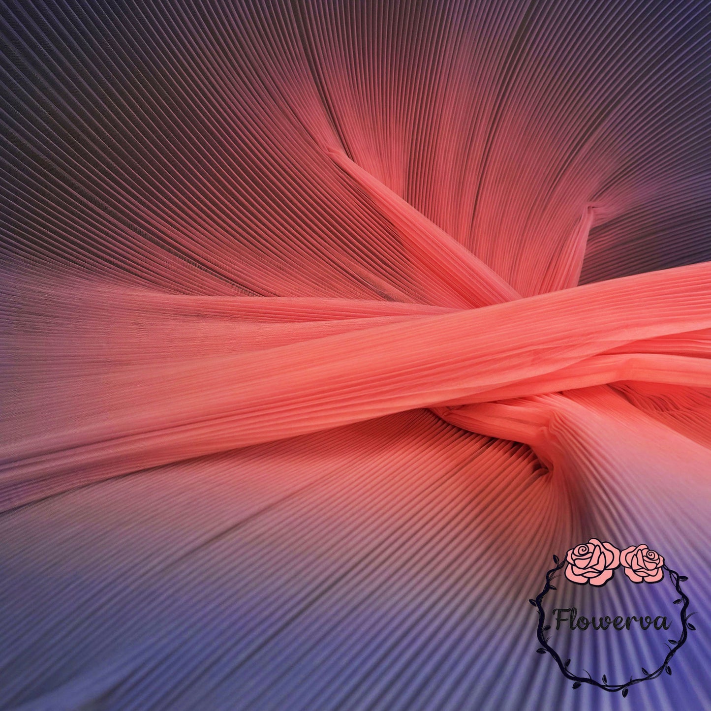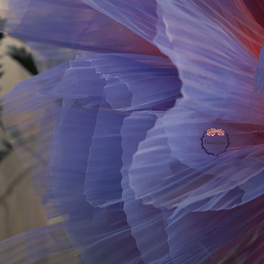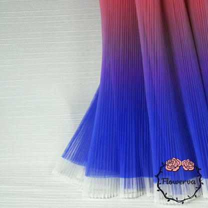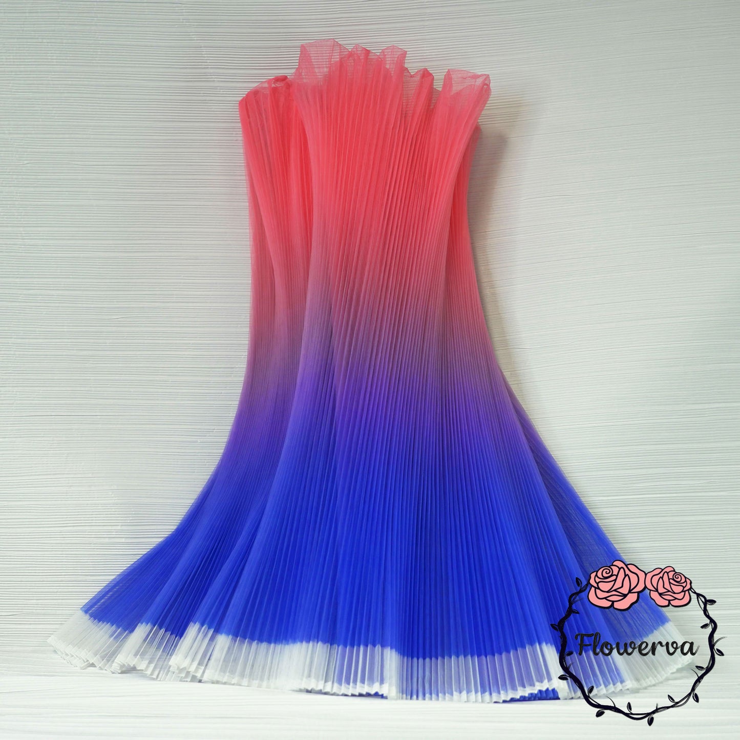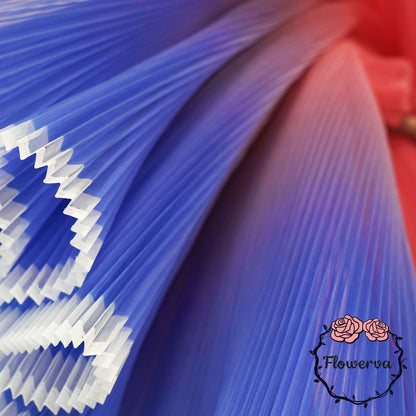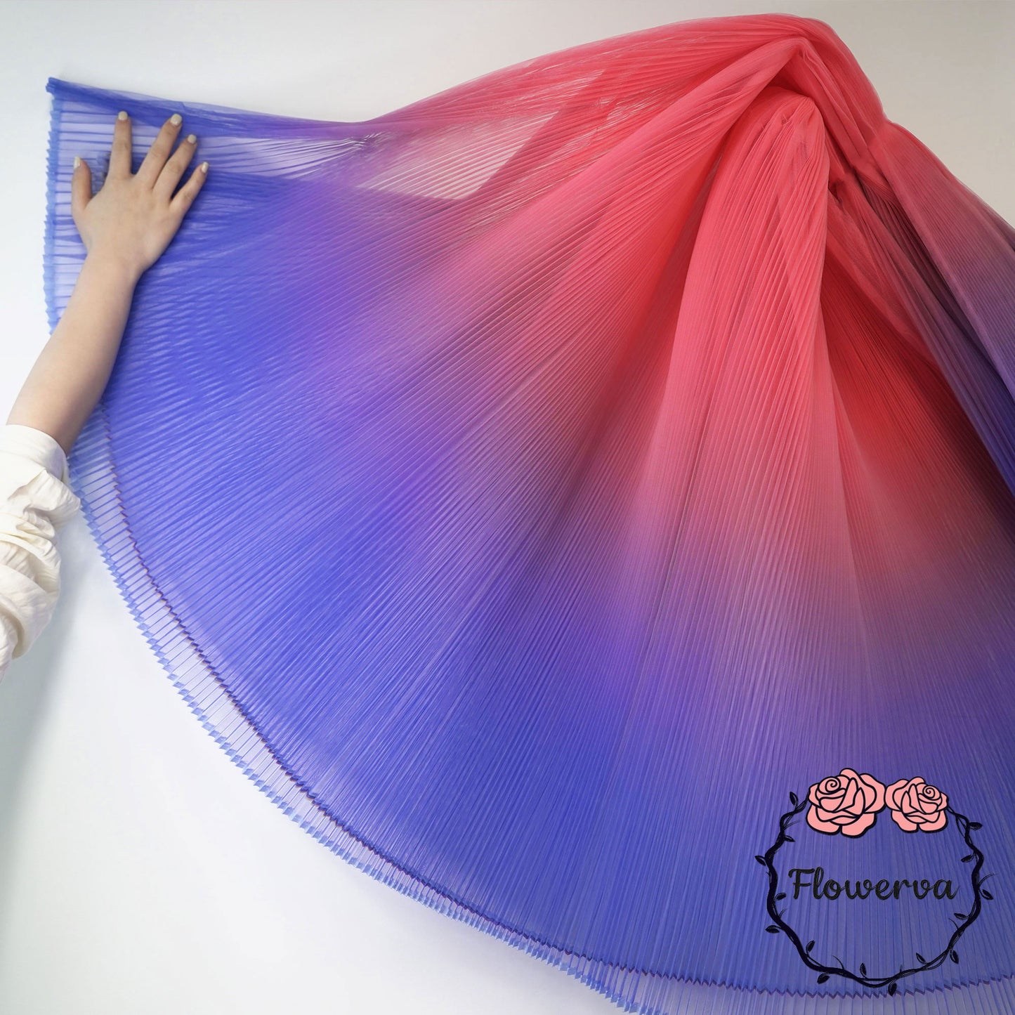 Tissu froissé en Organza plissé dégradé rouge et bleu, avec garniture rigide et large, tissus de styliste pour robe de scène faits à la main