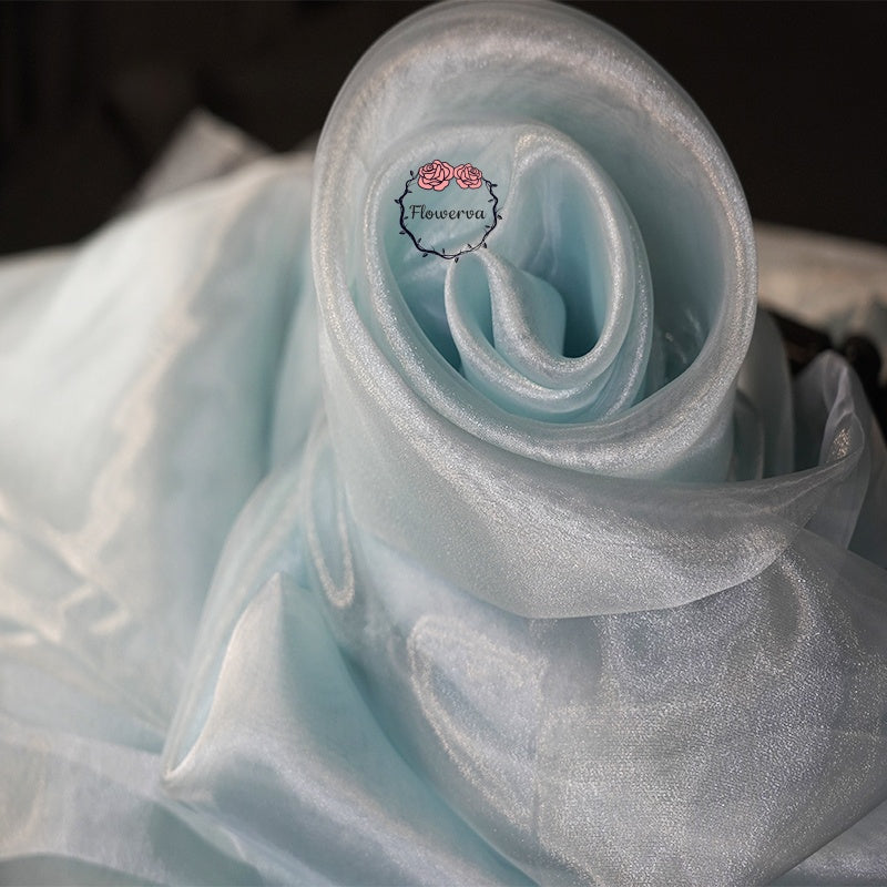 Flowerva – tissu en Organza de soie bleu, fin et doux, pour décoration de mariage, conception de robe