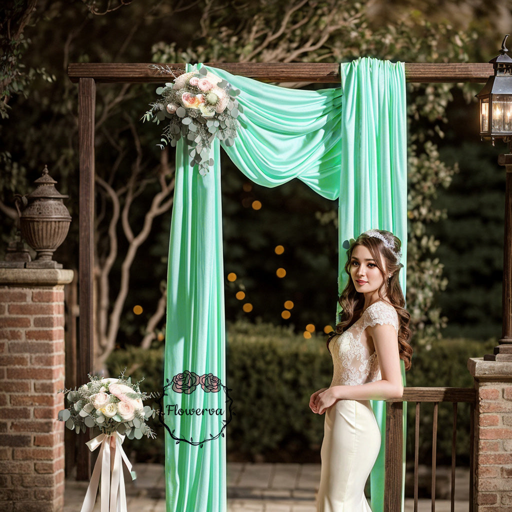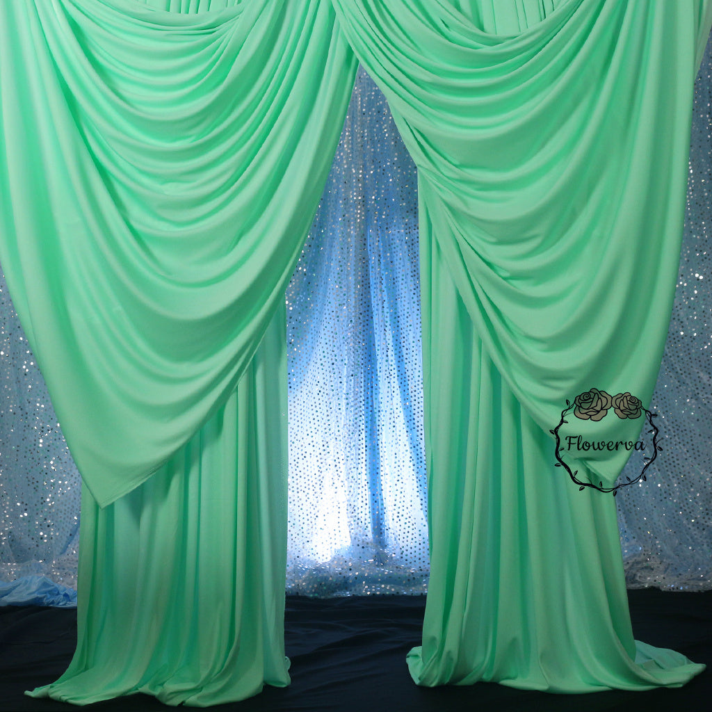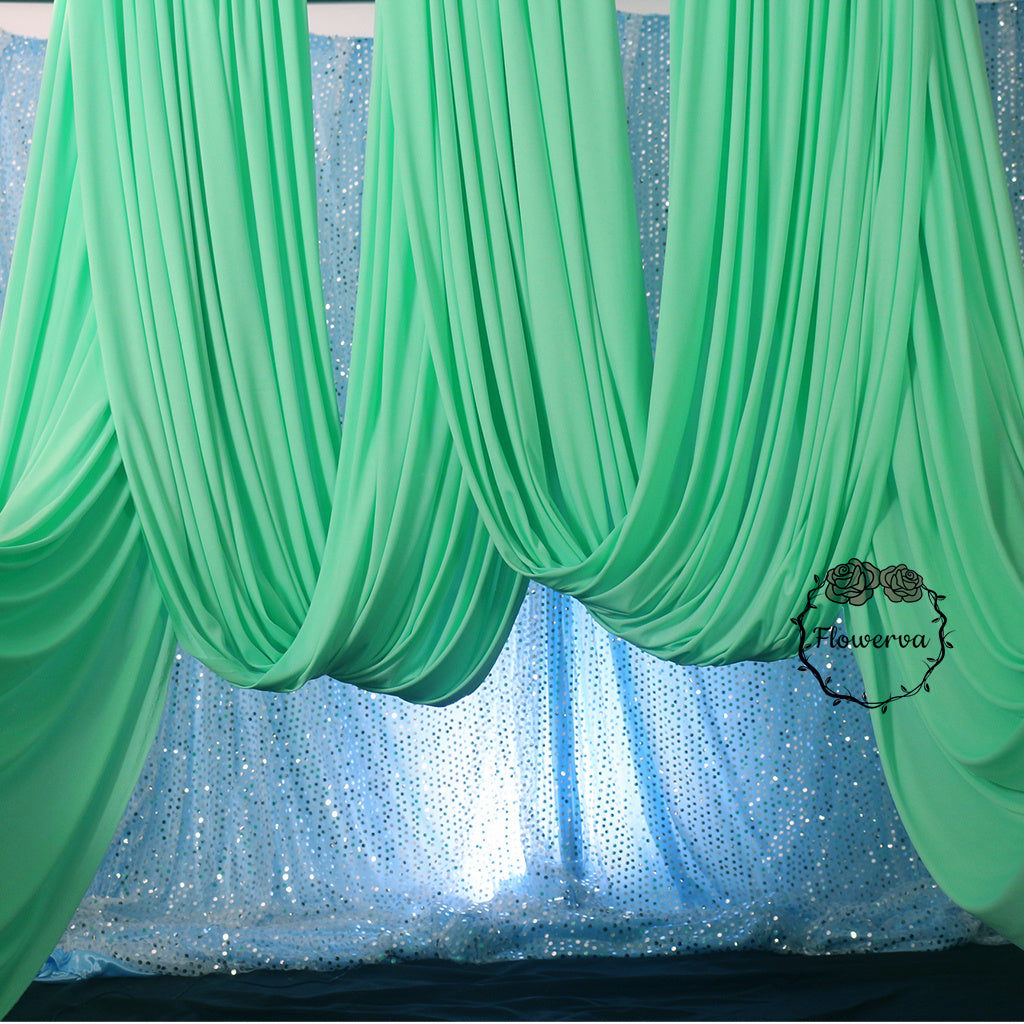 Draperie élastique en soie vert menthe, décoration de scène de mariage #378