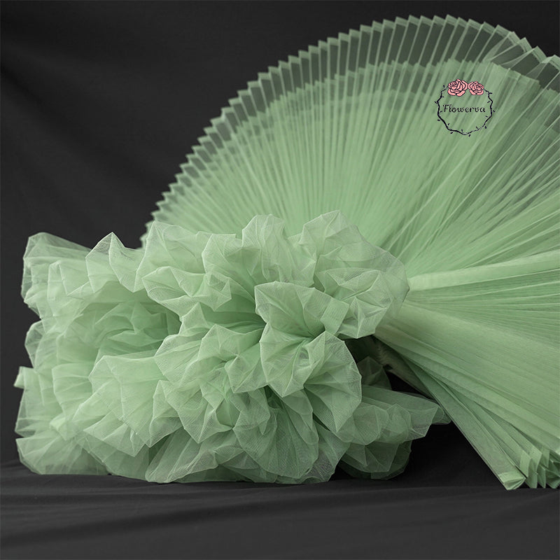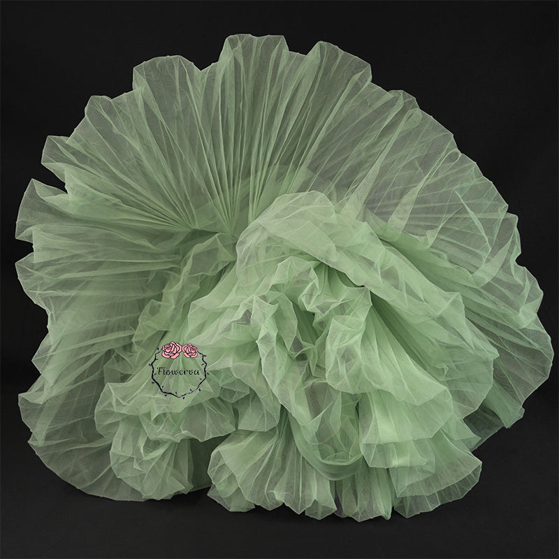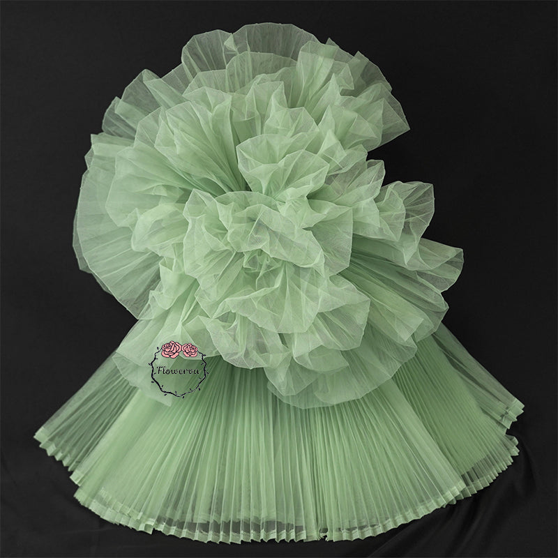 Ce bouquet exquis d’un vert émeraude serein évoque un sentiment de romantisme et d’élégance. Les volants délicats, confectionnés à partir de tissu organza plissé, ajoutent une touche de charme fantaisiste, parfait pour insuffler une touche romantique à toute occasion.