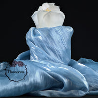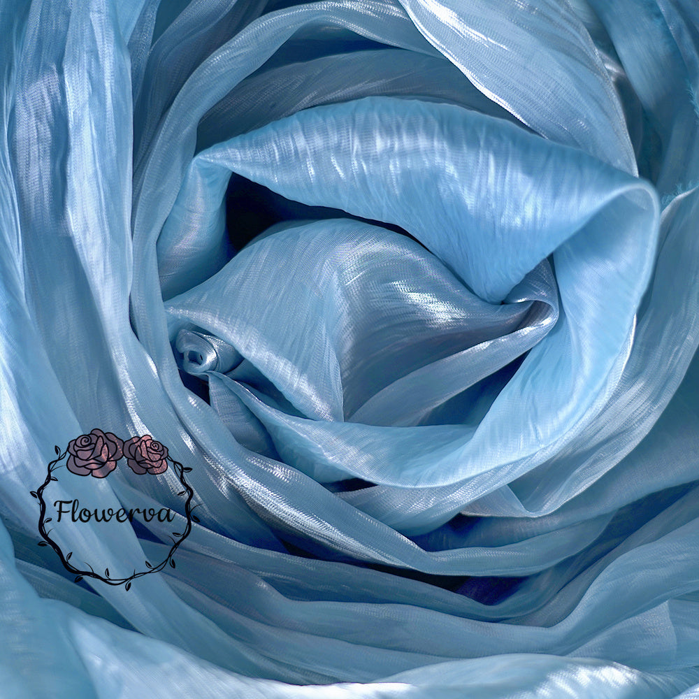 Flowerva Sparkling Ice Blue Crystal Organza froissé Gris Argenté Tissu Design Brillant