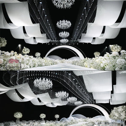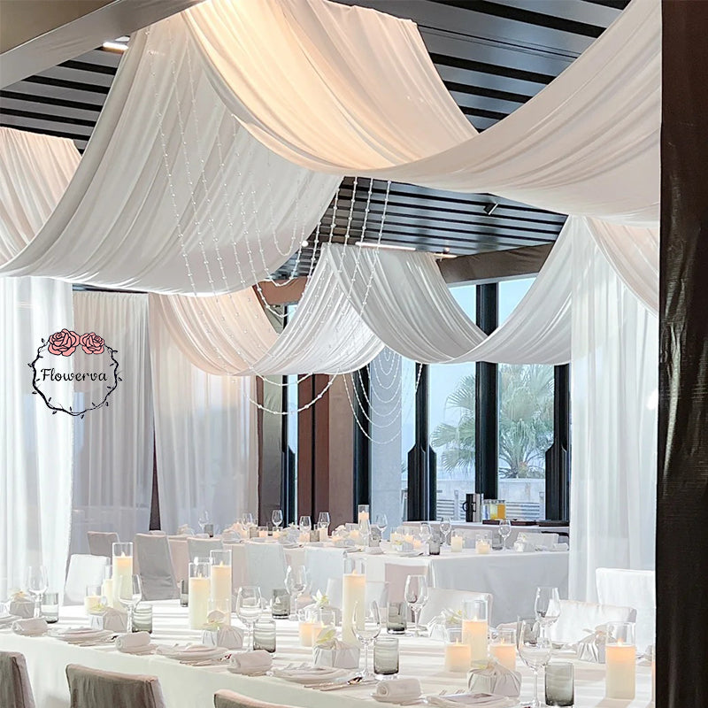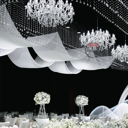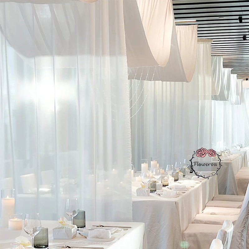 Ce tissu présente une élasticité exquise et une texture riche et soyeuse qui se drape magnifiquement. Parfait pour créer des arcades enchanteresses, des chemins d'allée élégants ou des traitements de plafond sophistiqués, ajoute une touche de sophistication et de rêve.