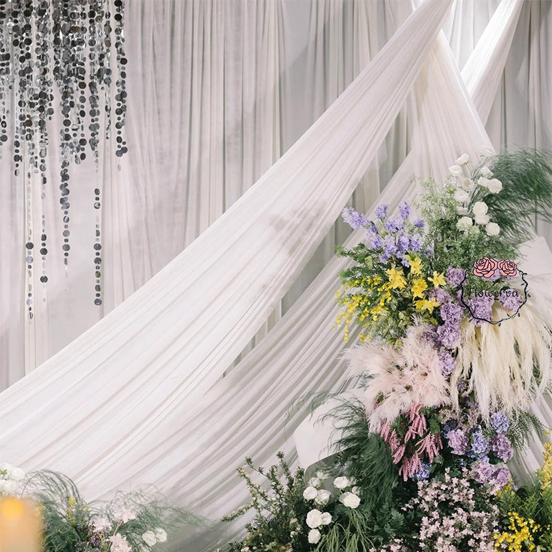 Draperie élastique en soie de lait blanche, décoration de fond de mariage #227