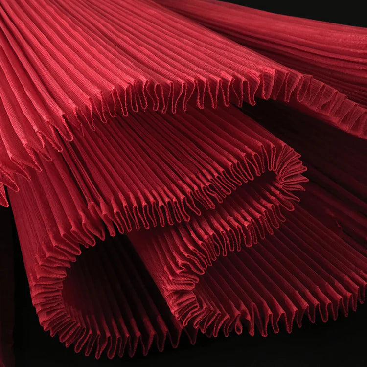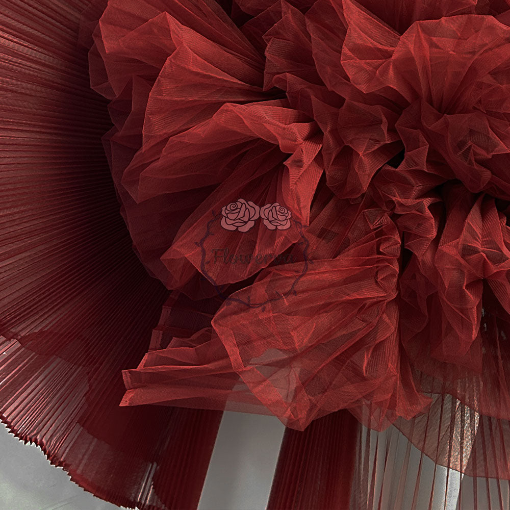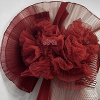 Ce tissu plissé rouge vin est astucieusement disposé dans un grand bouquet, évoquant un sentiment de luxe et de sophistication. Parfaite pour ajouter une touche d'élégance à n'importe quelle pièce ou tenue, cette pièce unique allie beauté et fonctionnalité, ce qui en fait un incontournable pour toute personne exigeante.