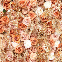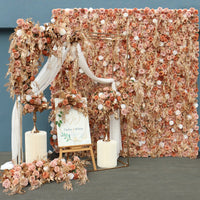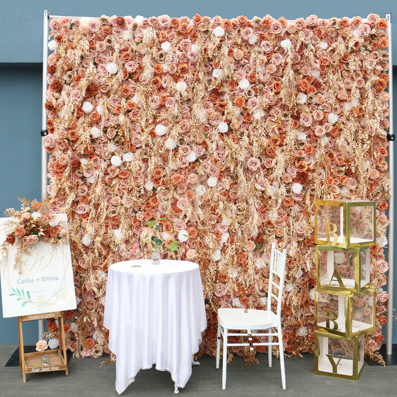 Luxury 3D Golden Roll Up Fabric Artificial Flower Wall Cloth Rose Plants Wall Arrangement Wedding Backdrop Decor Marriage Props