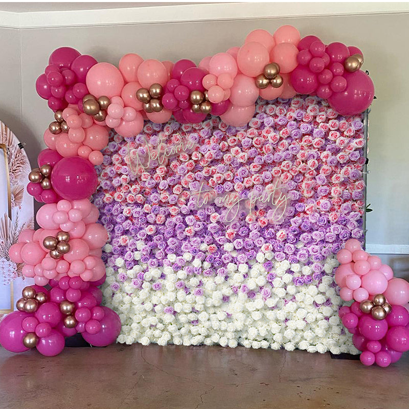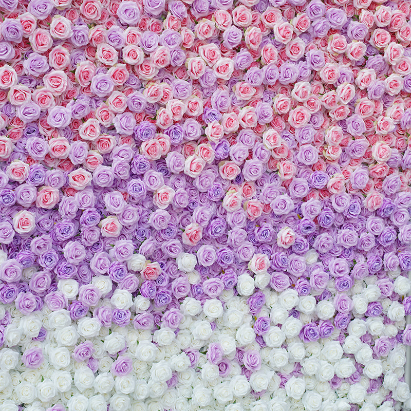 This soft gradient floral wall (blending blush pink, lavender, and crisp white blooms) is a dreamy pick for romantic events: it elevates wedding photo booths or reception backdrops, wrapping spaces in gentle, feminine charm.