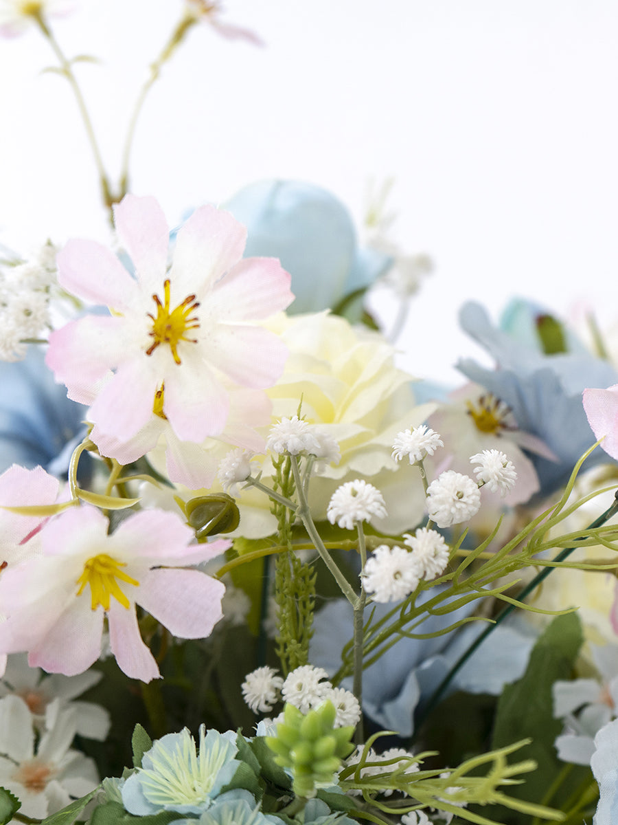 Each detail, from delicate petals to vibrant colors, is carefully crafted to captivate and enchant. These elegant floral arrangements bring a touch of romance and sophistication to any wedding venue. With their everlasting beauty, our simulated flower artworks serve as cherished keepsakes of your special day.