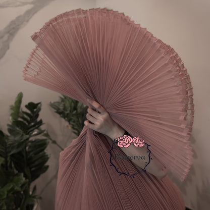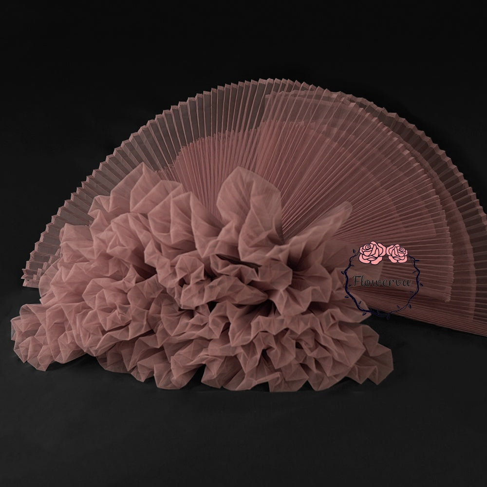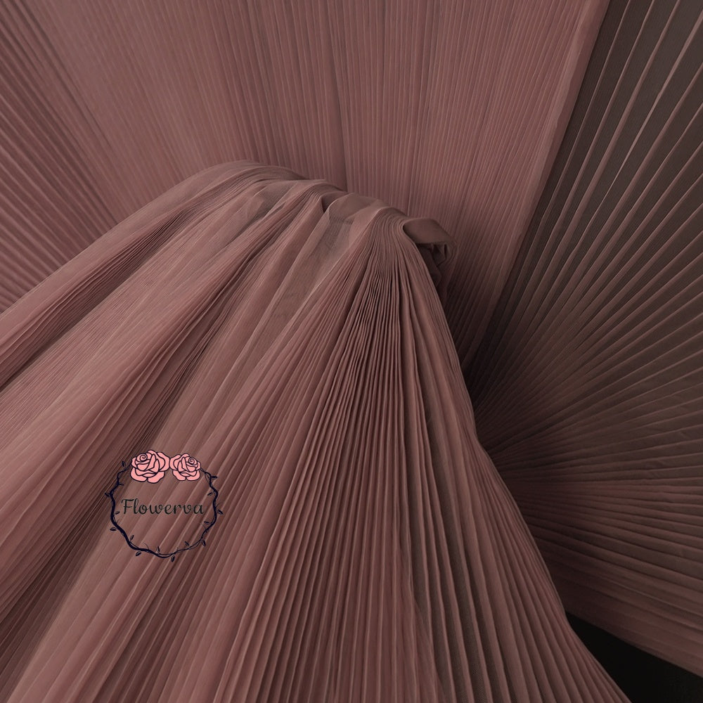 This fabric showcases a refined, versatile texture defined by delicate, structured pleats that add depth and movement to its appearance. Its lightweight, airy material carries a subtle, luminous sheen, which catches light gently to enhance the softness of its finish—whether in bold or muted tones. The fabric balances flexibility and shape retention, making it ideal for crafting dynamic decor pieces: from cascading event backdrops and voluminous fabric accents to delicate, layered styling elements.
