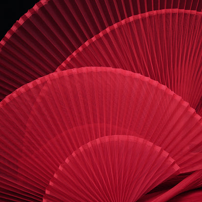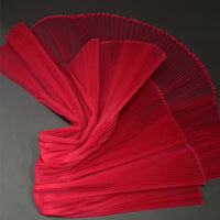 Bright Red Pleated Organza Crinkle Fabric With Rigid And Wide Trim Stage Handmade Dress Designer Fabrics