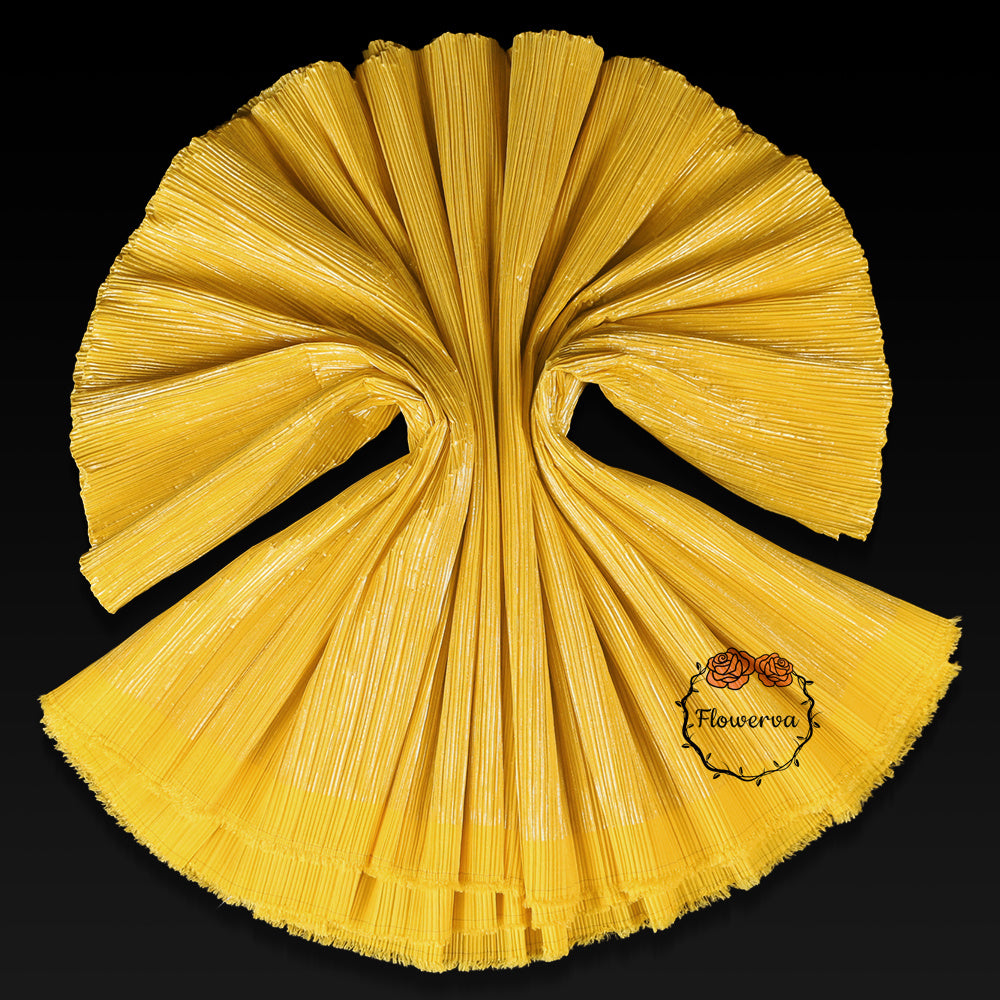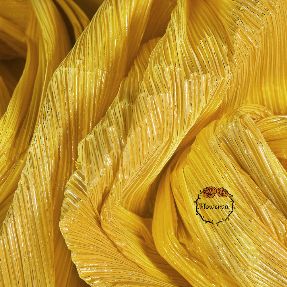 Flowerva Bright Yellow Hot Gold Stamping Wrinkle Pleating Texture Fabric Wedding Decoration