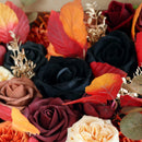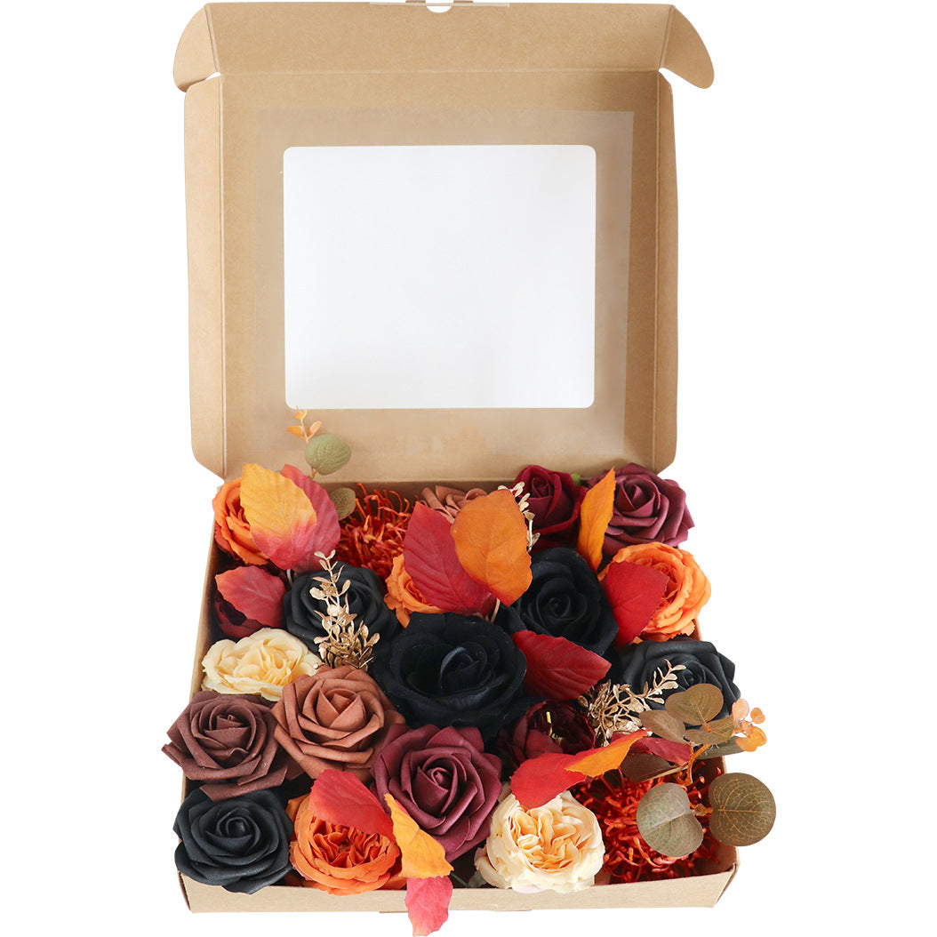 Simulated silk flowers: black rose x4, orange rose x4, bean sand rose x2, red peony x2, other flowers x3