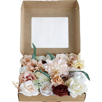 Simulated silk flowers: champagne x3, pink rose x3, white rose x4, red rose x2, other flowers x2