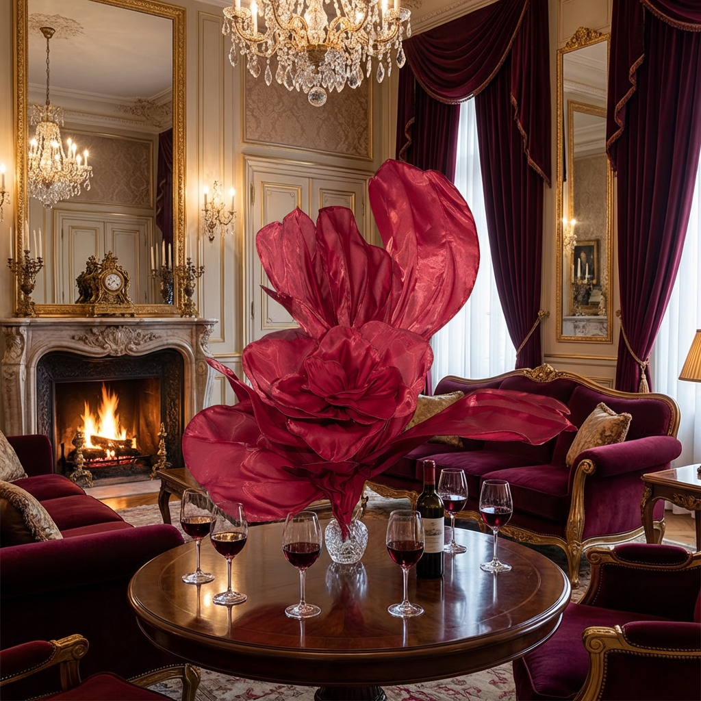 Crafted from lustrous, lightweight silk fabric, its oversized sculptural silhouette commands attention while retaining a soft, romantic drape. Perfect as a show stopping centerpiece for your Valentine’s Day dinner, engagement party, or intimate anniversary gathering, it transforms any space into a sanctuary of crimson romance. Let this table flower be the silent narrator of your love story, where every fold and curve whispers “I choose you”.