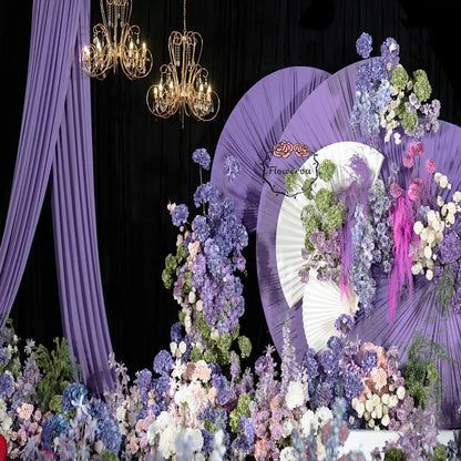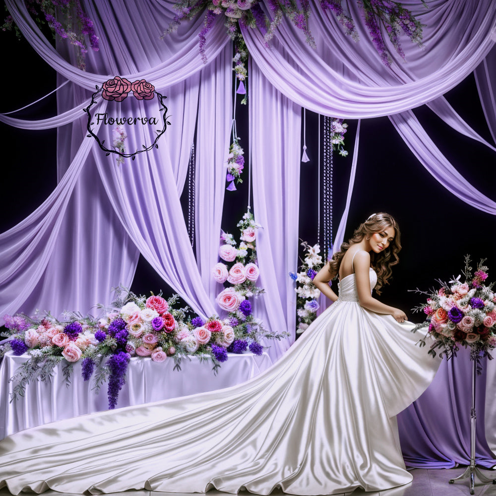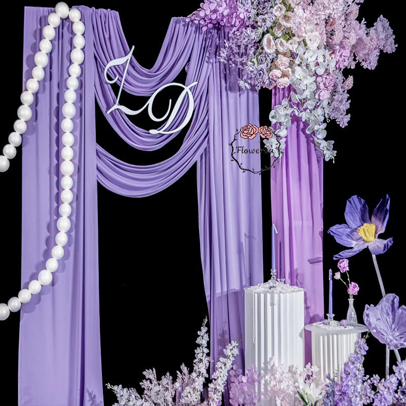 Perfect for party backgrounds or wedding decorations, fabric features a subtle light purple hue that exudes romance and sophistication.