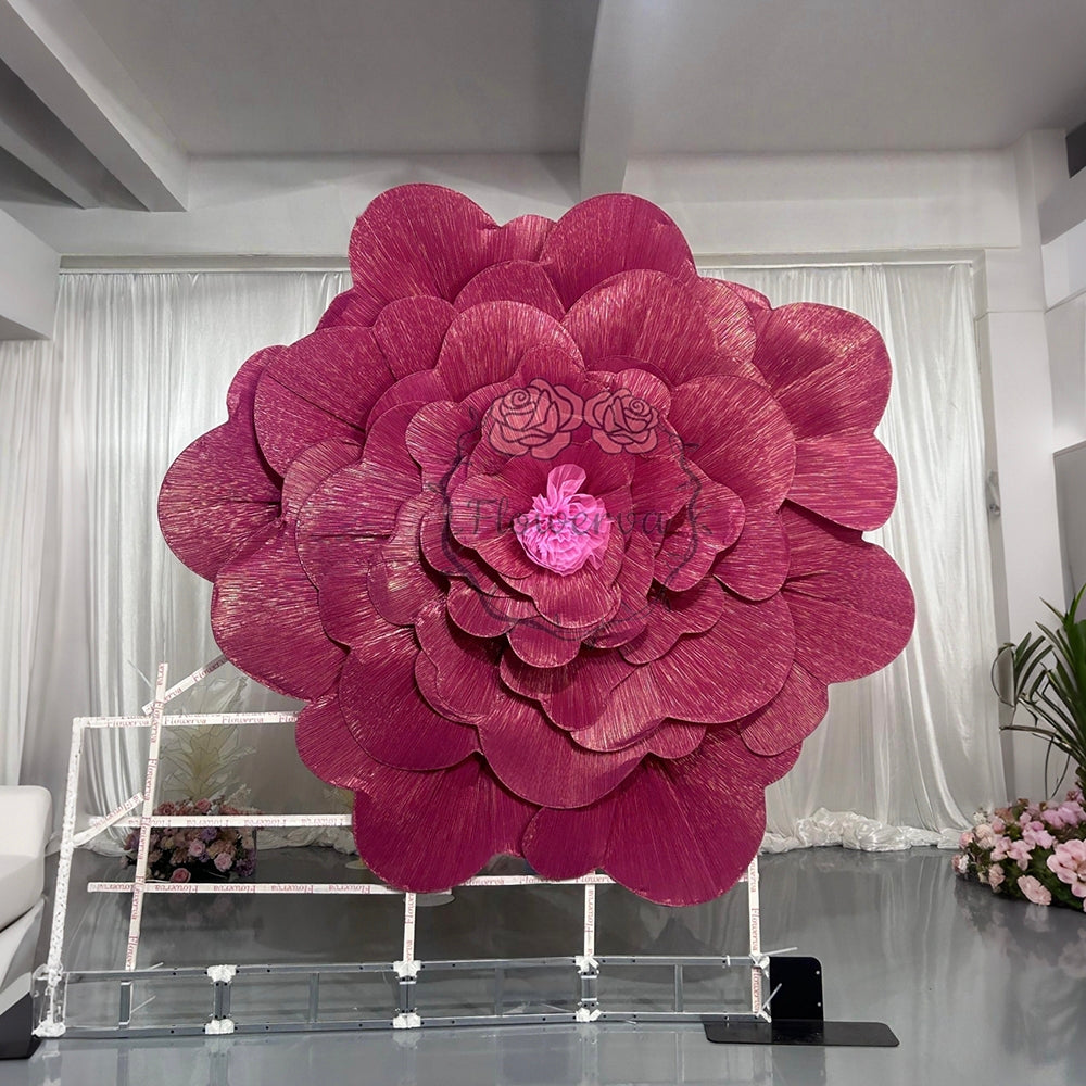 Like a crimson dream quietly blooming in the space, this giant fabric flower weaves romance with layered petals, the texture is the delicate precipitation of time, and the color is rich and warm. When it stands at the wedding scene, all expectations are melted into this never-fading flower tenderness, and wherever you touch it, you can capture the full romance.