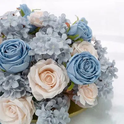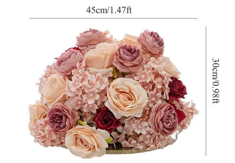 Flowerva Gold Leaf Colorful Rose Hydrangea Wedding Table Center Decoration